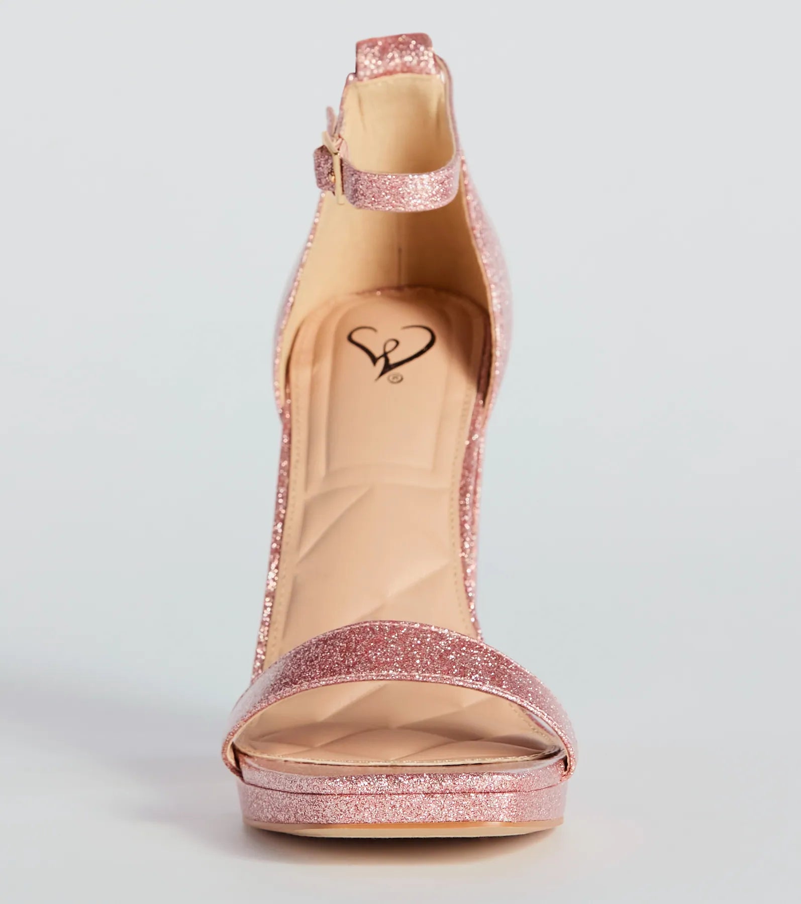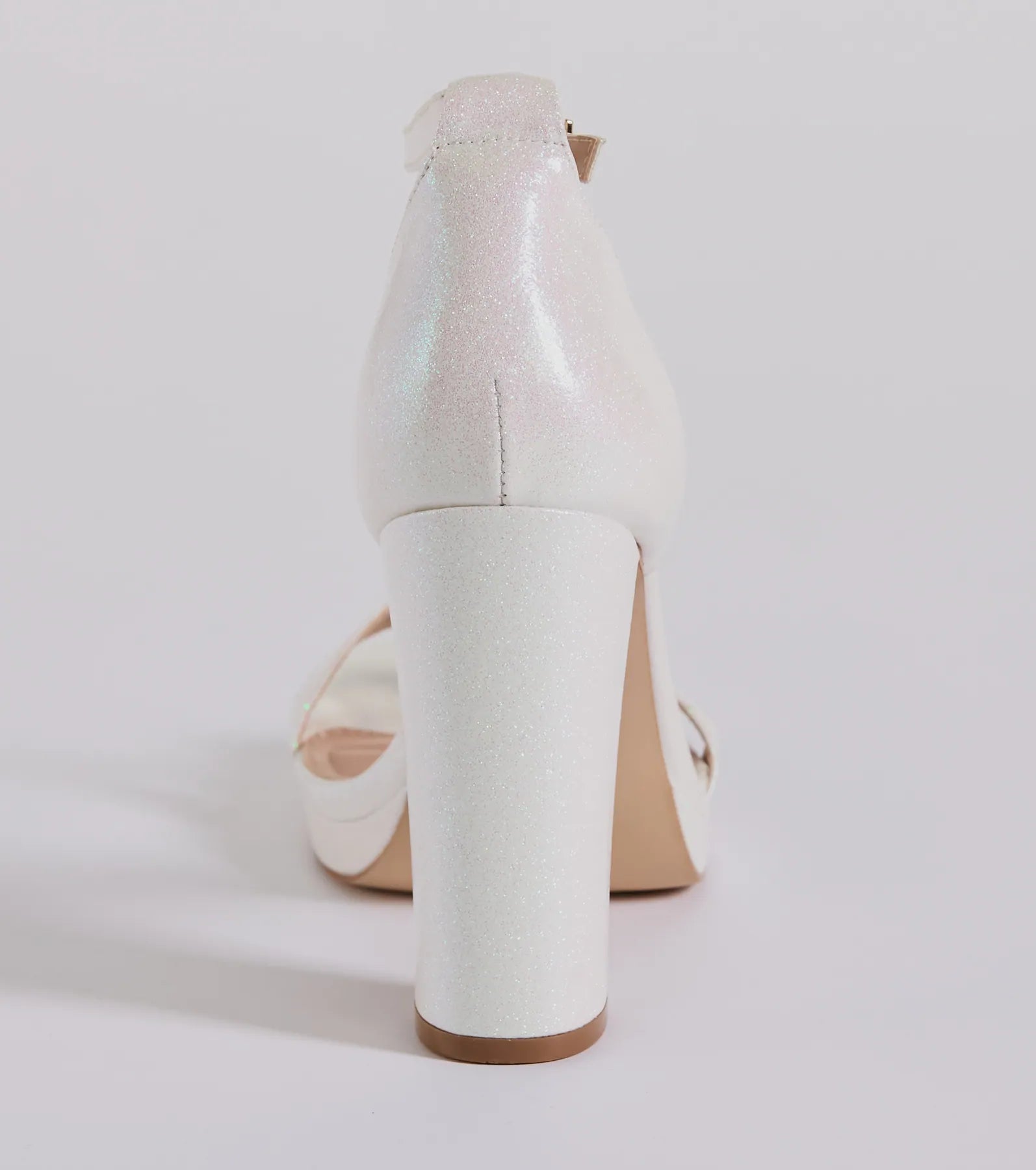 Capture sparkle in these block heels perfect for a night out or a dressy event! Featuring a sleek square toe, a platform sole that elevates the style, a block heel, a luxe fit cushioned insole for comfort, and a closed ankle with an adjustable strap with buckle closure. Complete the look with .