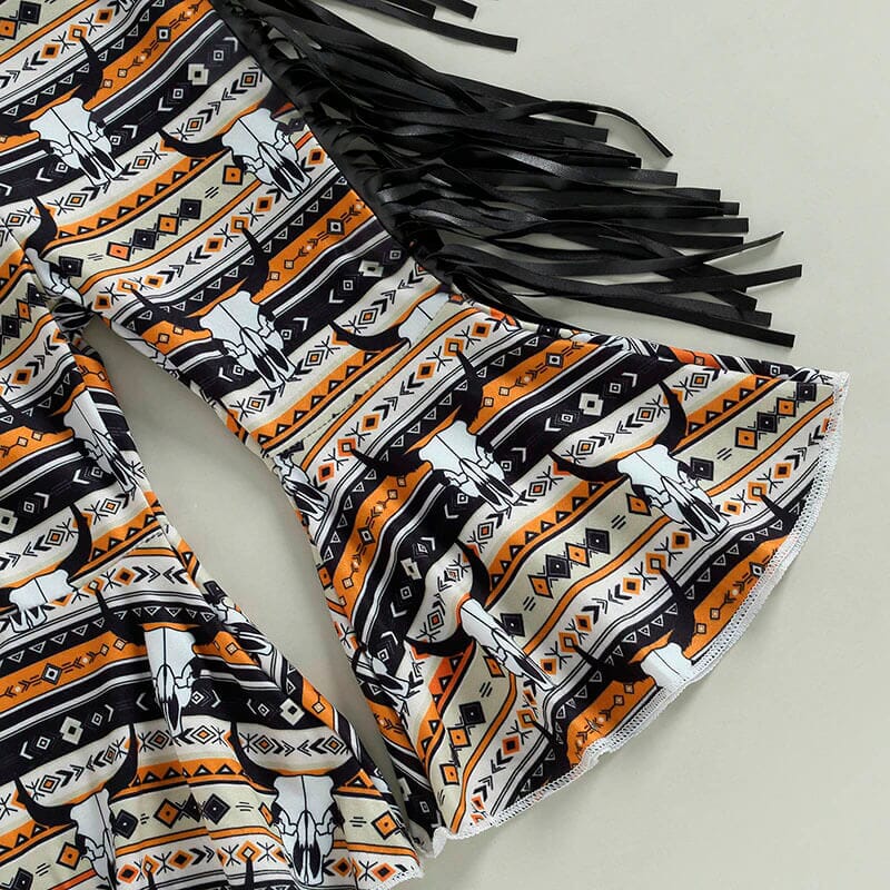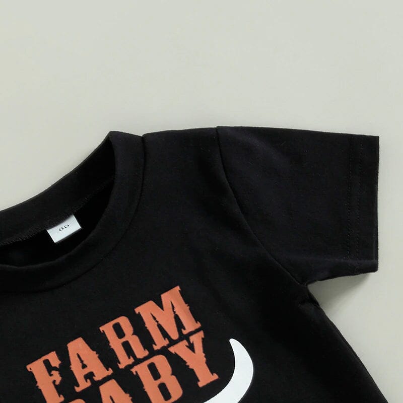 Get your little one ready for the farm with our adorable set. The black tee features bold orange lettering and is made from soft and comfortable fabric. The cowgirl pants are designed with a stylish fringe and have a comfortable elastic waistband. This outfit is perfect for a day on the farm or any casual occasion. Your little one will love the comfortable fit and you'll love how cute they look.