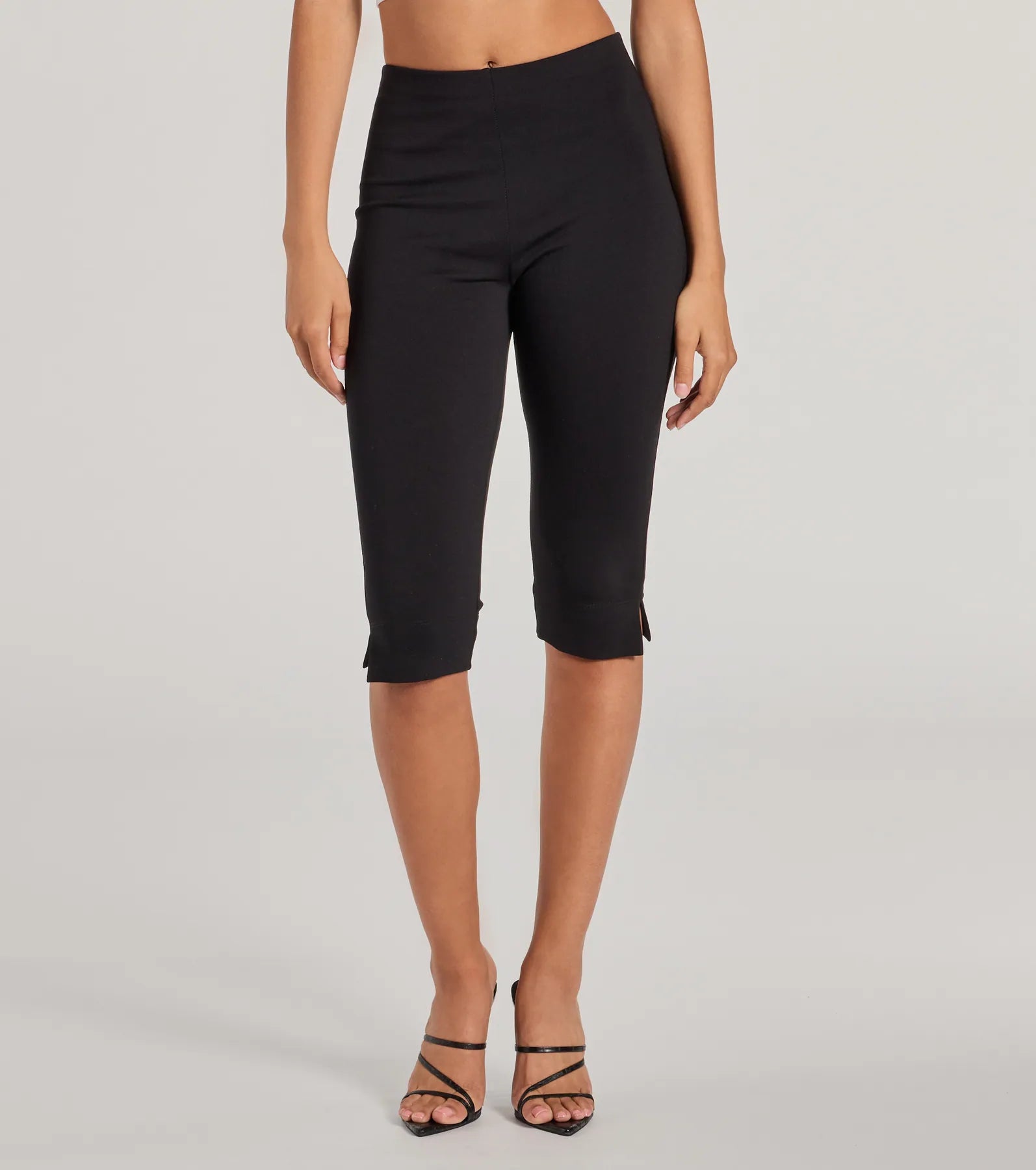 Slip into these classic and chic ponte capri pants for effortless style! Channel a 90s vibe in these pants featuring a flattering high-rise waist, form-hugging fit, and flirty side slit accents along the hem. Complete the look in a and sandals!