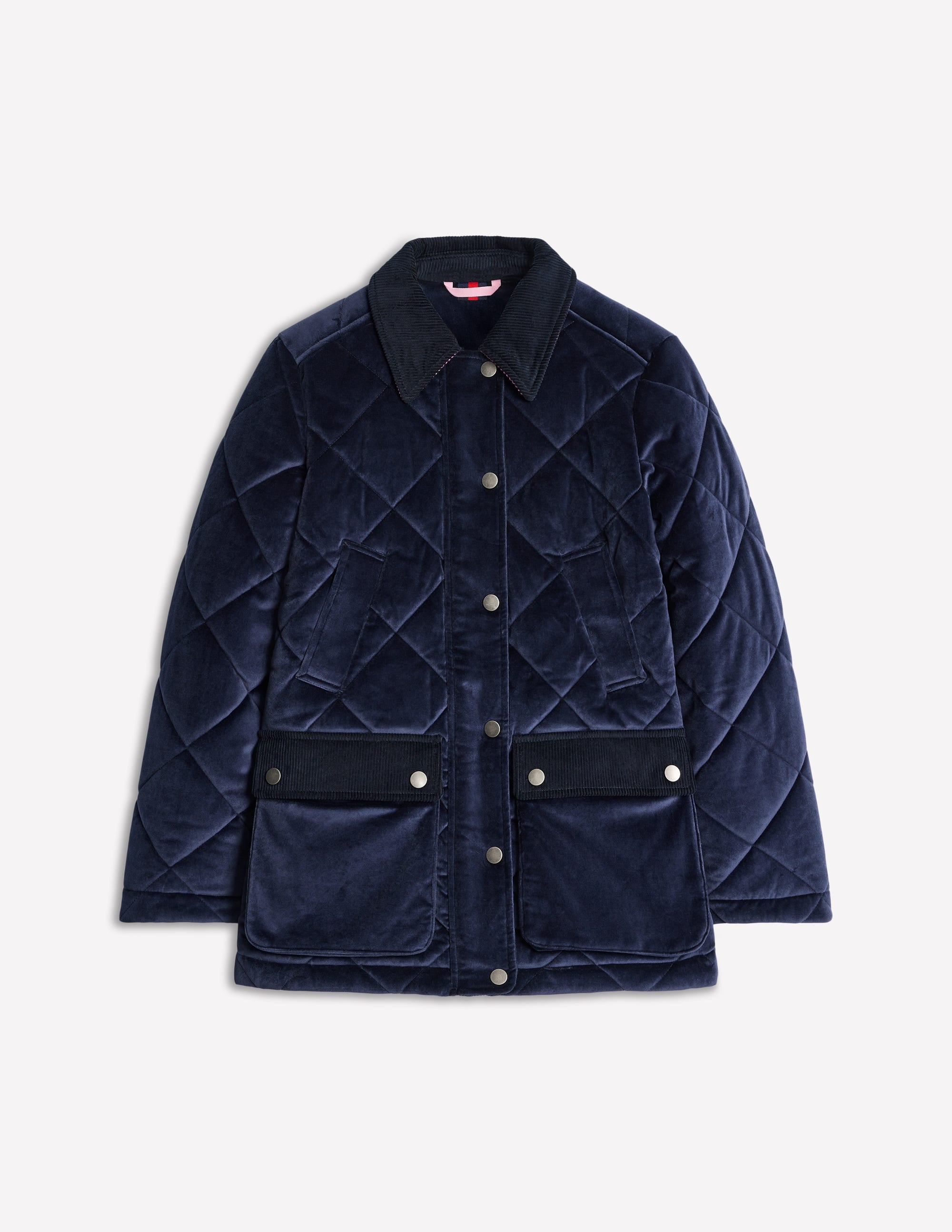 We've modified a heritage classic, the quilted jacket, with a decidedly decadent upgrade in the form of velvet. You'll still find the usual smattering of pockets and a cord collar, but this one's plush as can be.