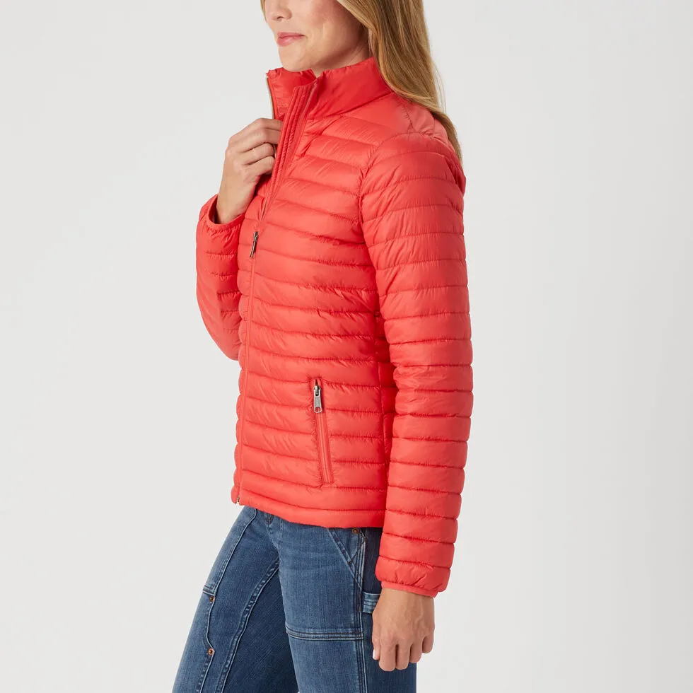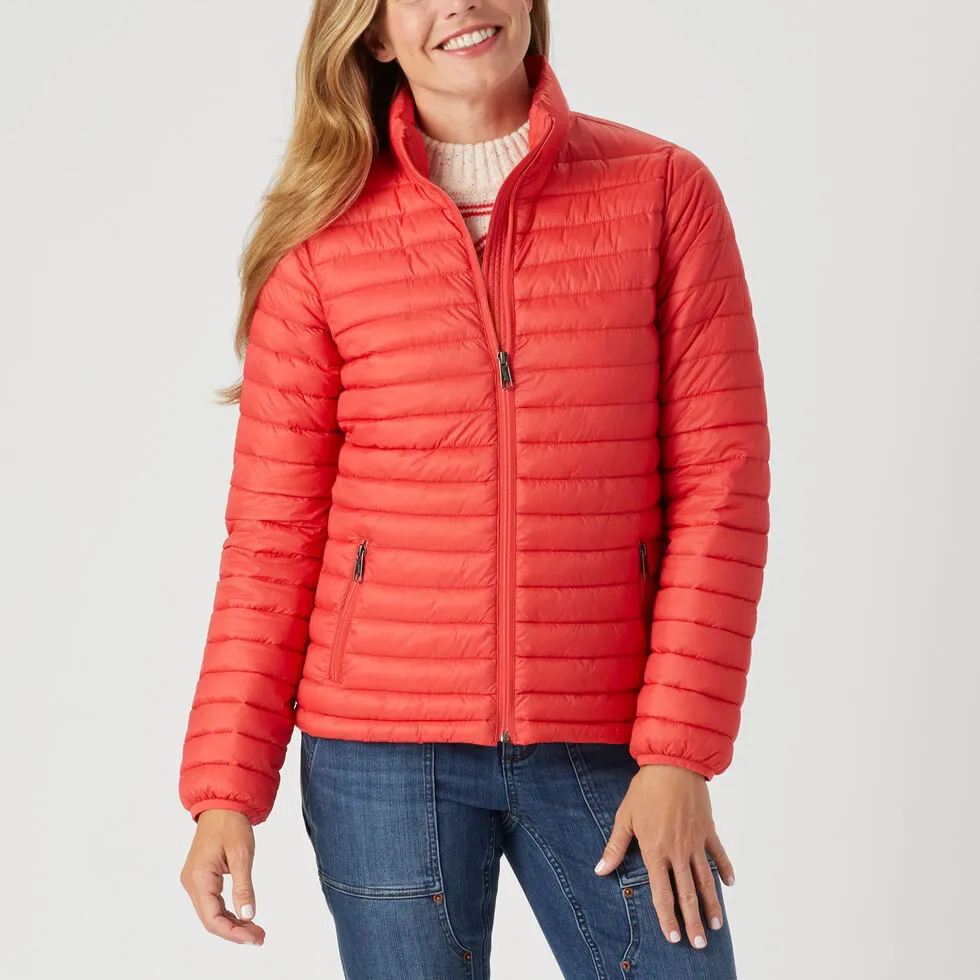 Whether you’re flying solo or layering up, the Grab Puffer Jacket delivers lightweight warmth year-round. Fortified with a DWR finish, the wind-resistant nylon shell shirks gusts and surprise showers. Sleek quilting makes for a streamlined fit, with Repreve® insulation crafted from recycled water bottles (7 in each jacket!). Reach Gussets™ give you room to move, while stretch binding at the cuffs keeps wind and wet out. Two zip pockets safely stash keys and cards. Good for you, good for the planet!